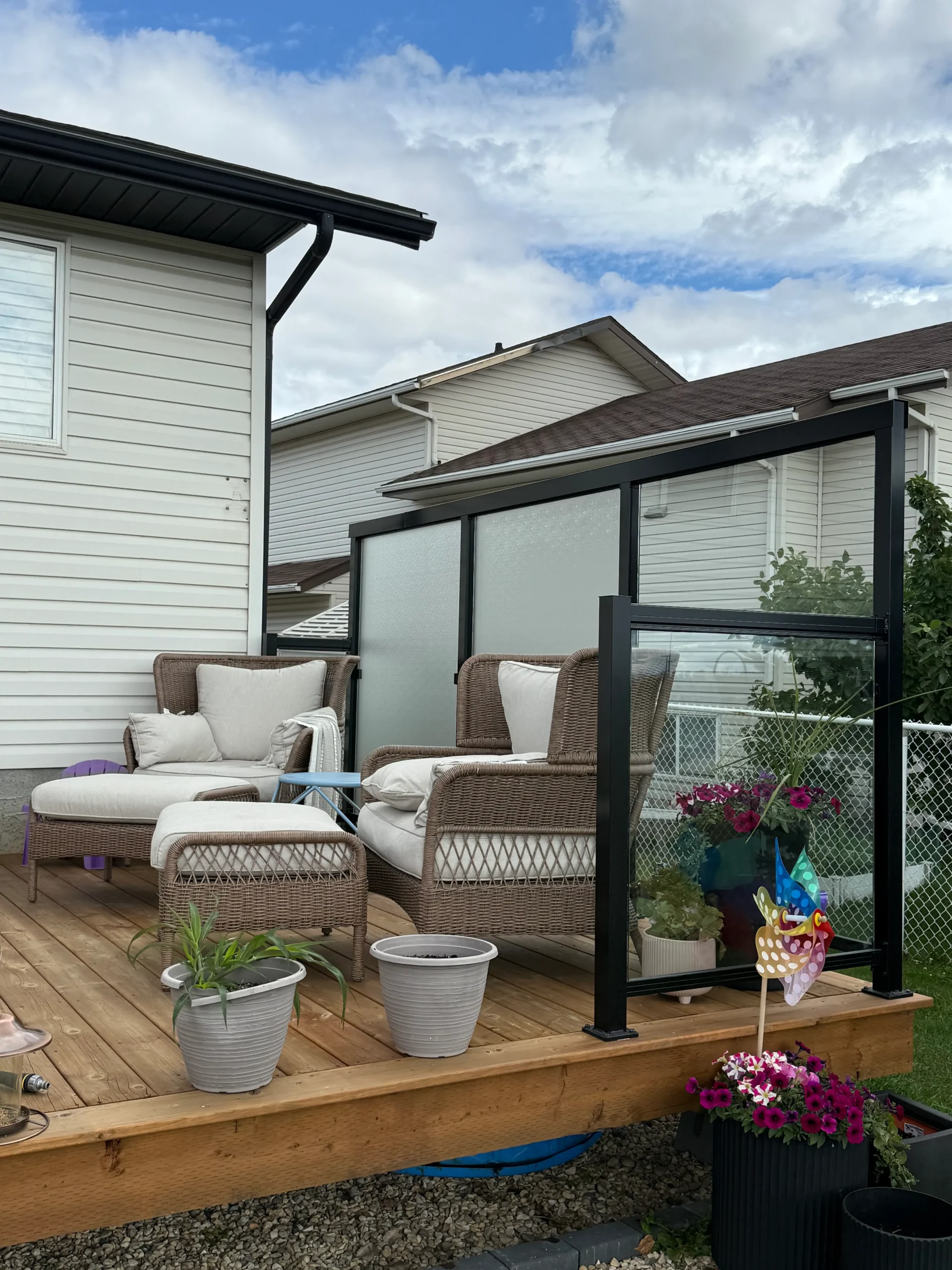 Everyone in Grande Prairie knows how windy it can get. Our custom privacy screens are designed to protect you from the elements and provide privacy. These screens are available in a variety of custom tempered glasses.